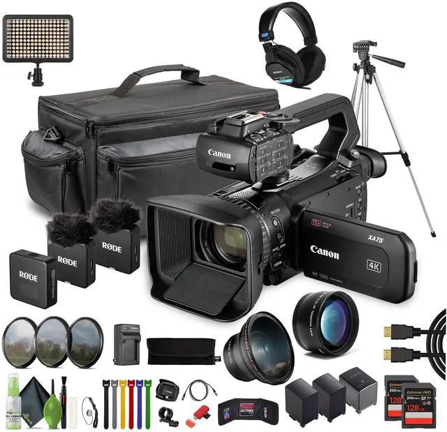 The Canon XA75 PAL Professional UHD 4K Camcorder is a compact yet powerful tool designed for journalists, documentary filmmakers, and event videographers seeking broadcast-quality performance in a portable form. Its 1" CMOS sensor and DIGIC DV6 image processor deliver sharp 4K UHD / 25p recording, while oversampled HD ensures excellent Full HD output. The integrated 15x optical zoom lens features a nine-bladed iris for natural highlights and Wide DR gamma for low-light situations. Advanced autofocus combines Dual-Pixel and Contrast AF with Face Detection and Face Tracking, supported by a 3.5" LCD touchscreen and high-resolution OLED EVF.