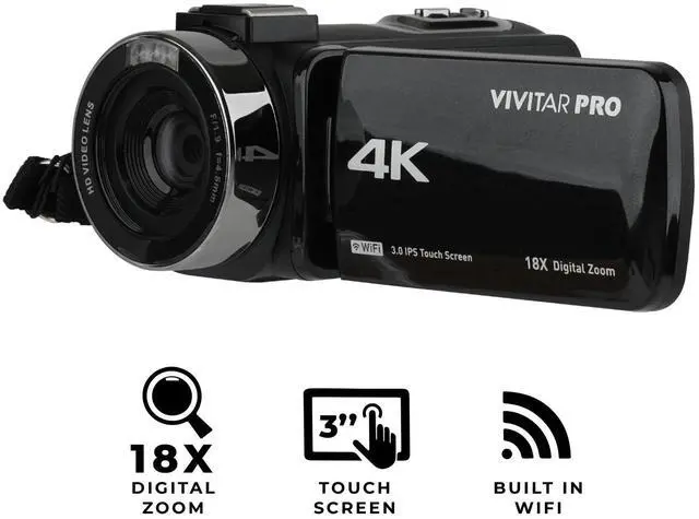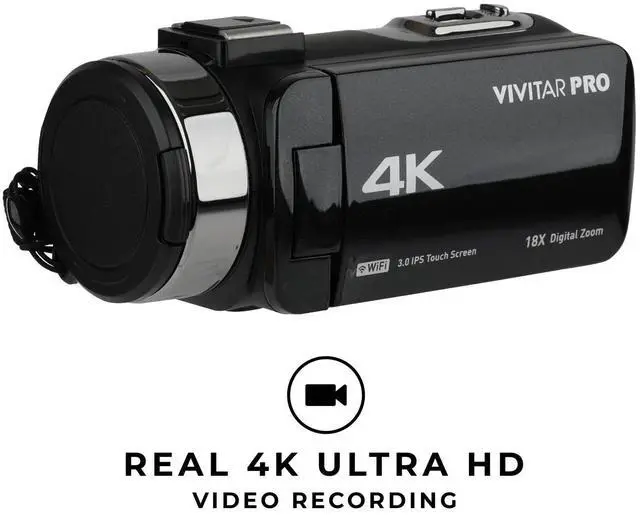 Vivitar 4K HD Digital Video Camera with WiFi, Built in Night Vision, and 3" Touch Rotational Display