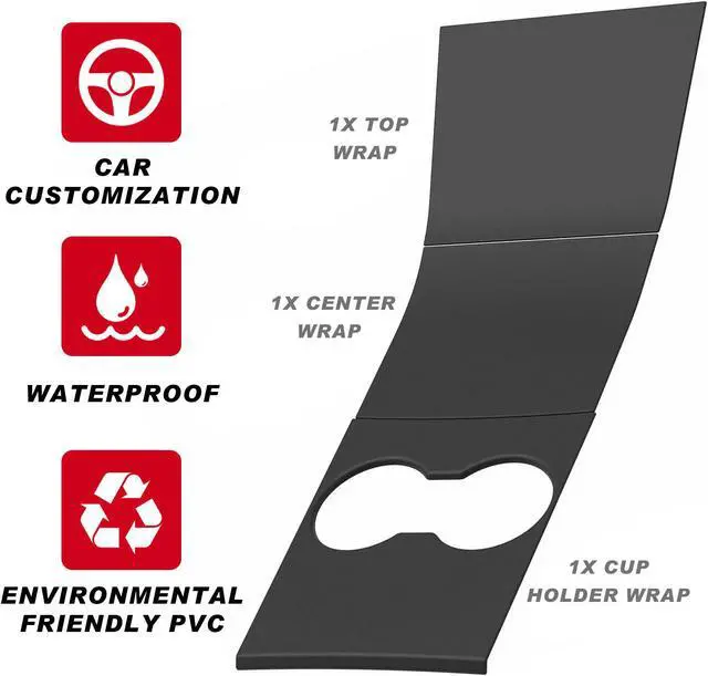 Tesla Model Y Model 3 Decoration Accessories: Attractive and practical, to make your precious car have a good looking. Center Console Wrap Kit includes, one top PVC sticker film, one center PVC sticker film, one cup holder PVC sticker film.