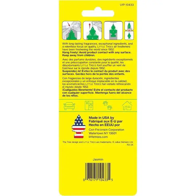 Add a little fragrance to your life with the world-famous Little Trees air fresheners. Jasmin. The sunny aroma of a field of Jasmine flowers.