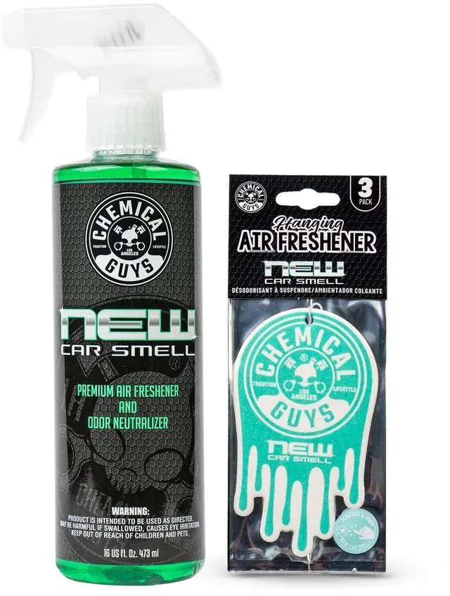• DOUBLE ACTING FORMULA - With Chemical Guys New Car Smell Premium Air Freshener, any space can smell like freshly-tanned leather; and specialty enzymes destroy odor-causing agents to permanently stop odors at their source