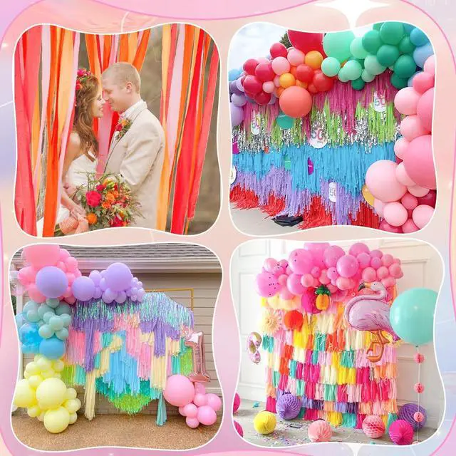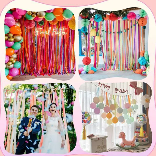 Material: These crepe paper streamers come in unique colors and textures, Unlike the ordinary paper streamers, crepe paper streamers is stretchy and sturdy enough, please treat it gently and avoid pulling it with violence, each roll of the paper party streamers is rolled carefully to use easily and long enough, the paper streamers set looks brilliant and colorful, which can add a distinctive effect to your party decorations. Suitable for indoor and outdoor or New Year photo studio props, events, photo booths, backdrop, festival celebration decorations, photography background, dessert table decor, fit for doorway, fireplace, living room, dessert table backdrop, stage background decorations.