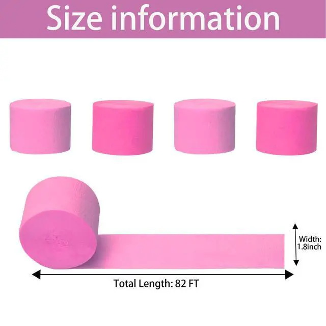 Package Specifications: The package includes hot pink paper streamers (2roll), pink paper streamers (2roll), 4 roll in total, each roll of party streamers is 0.1*82 feet / 4.5cm*25m (W*L), ideal birthday, wedding, bachelorette party, bridal shower, baby shower, engagement, valentine's day, thanksgiving, new year, christmas, xmas, housewarming, mother's day, hot pink theme party decorations. suitable for football party, family party, class party graduation party, Beautiful Crepe Paper for decorating window doorway, walls Garden, home party, office create a romantic dream party atmosphere.