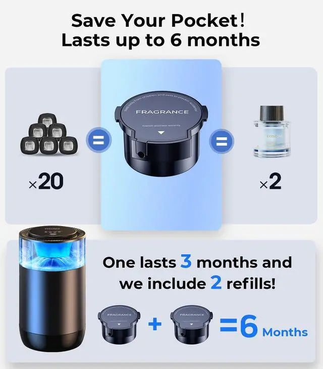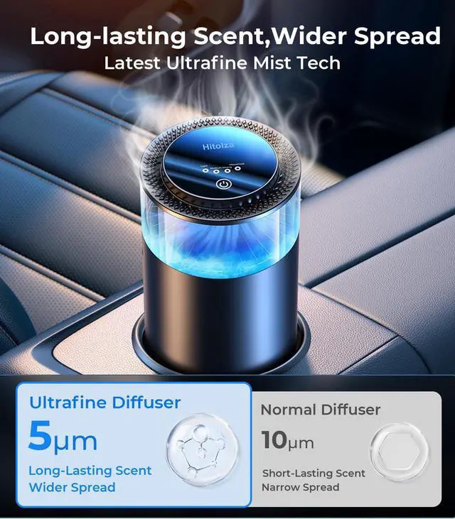 Hitolza Car Air Freshener Osmanthus Orchid [Waterfall-inspired Car Air Freshener]: Elevate your journey with the Hitolza Car Air Freshener, inspired by the breathtaking Niagara Falls. Its unique waterfall design allows the fragrance to flow like a cascading waterfall, gently rising to fill your car with a refreshing, natural aroma. Turn every drive into a delightful and aromatic adventure [Smart Auto On/Off]: Equipped with the latest A8 Pro smart chip, the Hitolza Car Air Freshener automatically turns on or off based on vehicle vibration. It activates when you enter the car and shuts off when you exit. You can also adjust the fragrance intensity and lighting effects to your preference, fully enjoying the blend of technology and natural scents [Latest Ultrafine Misting Technology]: The Hitolza car air freshener utilizes cutting-edge ultrafine misting technology to atomize the fragrance liquid into 5m particles. This allows the scent to last longer and diffuse more widely throughout the car. No additional chemical misting agents are needed, ensuring a pure and natural fragrance experience [Health First, Pure and Safe]: People, not things. 100% Natural. Our alcohol-free, non-toxic car air fresheners adhere to the strictest EPA Safer Choice IFC Standards. They are free from harmful chemicals like toxic air contaminants, reproductive toxins, endocrine disruptors, CMRs, or respiratory sensitizers. Looks good, smells good, all good [6 Months Long Lasting]: Comes with two essential oil refills. The built-in counter allows each refill to spray up to 1,200 times. If you drive 10 hours per week, the two refills can last up to 6 months. Currently available in six scents and still being updated [High-capacity Battery]: This car air freshener is equipped with a built-in 900mAh lithium battery. A full charge provides up to two weeks of use, eliminating the hassle of frequent charging and allowing you to enjoy a long-lasting fragrance experience. aromatizante para carro aromatizante para carro olores para carro