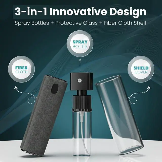 Features a practical combination of a precision spray mechanism, a clear glass bottle, and an integrated soft fiber cleaning shell. This smart design brings durability, convenience, and screen care essentials together in one compact unit.