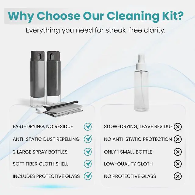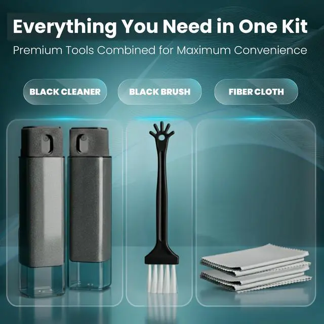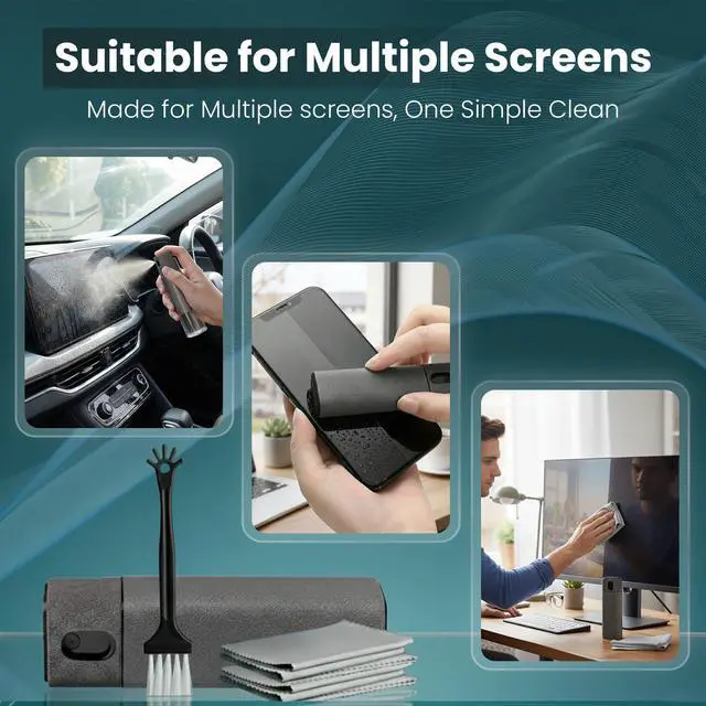 This all-in-one kit includes a precision spray bottle, soft microfiber cleaning cloth, and a small brush for detail cleaning. Designed to provide a simple and convenient way to care for screens at home, in the car, or at the office.