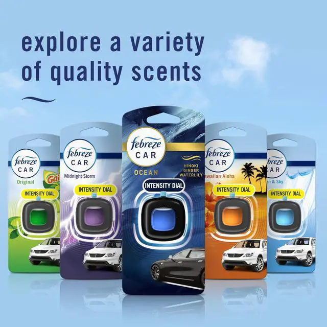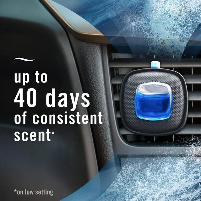 Elevate your commute with an air of distinction: This Febreze CAR Vent Clip air freshener fights odors with a scent unlike any other.Make a statement with the carefully crafted scent of waterlily, ginger, and hinoki in mesmerizing Febreze Ocean.Want to enhance your drive with an invisible, yet noticeable upgrade that lasts up to 40 days? Simply flip the clip until you hear a click, clip into your cars vent, turn on the air, and indulge your passengers with a luxurious fragrance thats almost too good for a car. And when it comes to the level of intensity, youre in the drivers seat: Crank it up or dial it down with CAR Vent Clips adjustable nozzle. Looking to up your fragrance game at home, too? Try our other luxe Febreze scents.