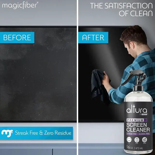 This Screen Cleaning Kit is specifically formulated to safely clean fingerprints, dust and smudges on all types of screens and monitors without leaving streaks or residue. Get more out of your displays by keeping them as clear and bright as possible, and with the included extra-large oversized MagicFiber cloth you can clean your entire large TV with a single swipe. MagicFiber is the #1 selling microfiber brand in the world.
