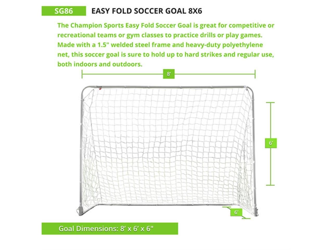 Champion Sports SG86 Easy Fold Soccer Goal - 8 ft x 6 ft - 1.25" dia Frame