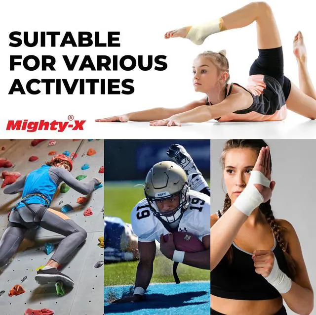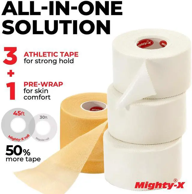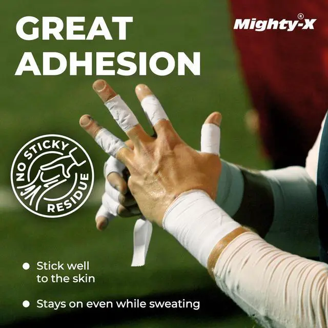 Mighty-X white athletic tape for injuries is designed to be sweat-resistant. It withstands moderate exposure to water and sweat during activities.
