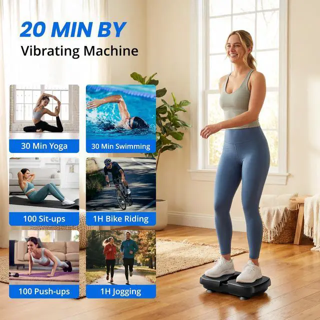 Whole Body WorkoutAfter exercise, use the RYGEO vibration fitness plate for 10 minutes to relax muscles in different areas such as the abdomen, waist, back, legs, buttocks, and arms. At the same time, the vibration plate promotes lymphatic drainage, aids weight loss, relieves overall tension, enhances blood circulation, alleviates chronic pain, and accelerates metabolism.