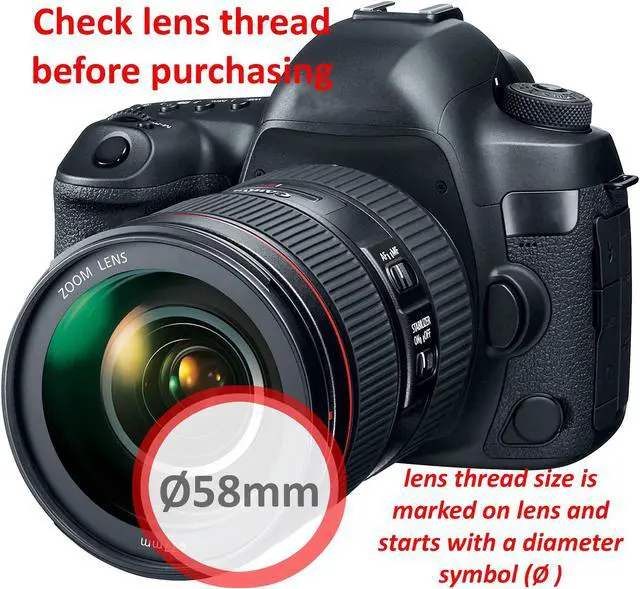 NOTE: Compatible with all 55mm camera lenses and 58mm filters or accessories. Your lens thread size will be printed underneath your lens cap or written somewhere on the lens barrel. Make sure you order the correct size otherwise it will not fit your lens.