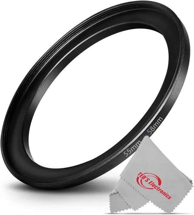 - The ring adapter easily screws onto the front of any 55mm lens and converts the thread size of your lens to the thread size of any other 58mm accessory (such as filters, hoods, flashes and lens converters).