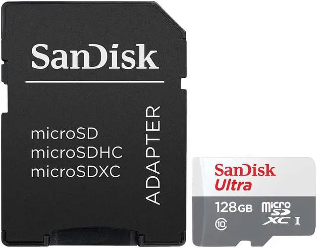 2 SanDisk 128GB Ultra MicroSDXC UHS-I Memory Card with Adapter The SanDisk Ultra® microSD UHS-I card gives you the freedom to shoot, save and share more than ever before. With 128GB card included, our SanDisk Ultra microSD card is perfect for recording and watching Full HD video, with room for even more hours of video. Transfer speeds of up to 120MB/s help you move your content blazingly fastup to 1000 photos in just one minute. Ideal for Android-based smartphones and tablets, this cards A1 rating means that you can load apps faster too.