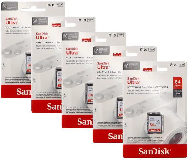 This Bundle from Teds Electronics includes: - 5x SanDisk 64GB Ultra SDXC UHS-I Memory Card - Up to 140MB/s, C10, U1, Full HD, SD Card - SDSDUNB-064G-GN6IN