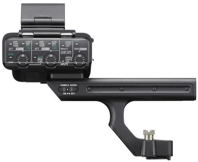 Add two XLR inputs and enjoy more ergonomic handling of your FX3 or FX30 with the Sony XLR-H1 XLR Handle Unit. It has two combo XLR-1/4" inputs along with a 3.5mm mic input. For easier operation, the handle has physical controls and dials located on the side with covers to prevent against accidental changes in the middle of a take.