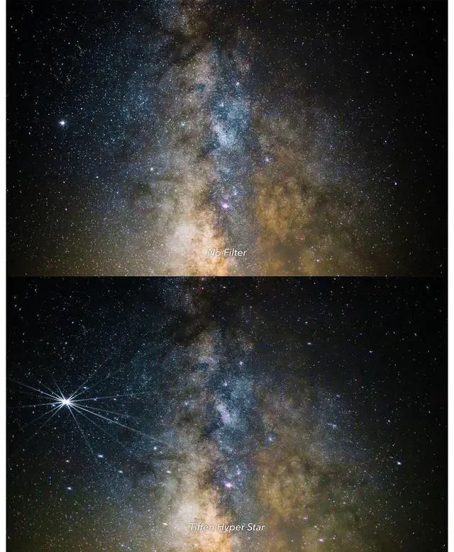 Take your photography to the next level with the Tiffen 6.6 x 6.6" Hyper Star Effect Glass Filter, an innovative accessory designed to transform ordinary light sources into mesmerizing starbursts that add a touch of magic to your images. This high-quality, durable glass filter is perfect for photographers and videographers looking to infuse their work with a sense of mood and romance, particularly during weddings, engagements, and other special events. Crafted with precision, the Tiffen Hyper Star Effect Glass Filter features 8 star points, allowing for a stylish and versatile application that enhances point light sources such as candles, streetlights, and lanterns.