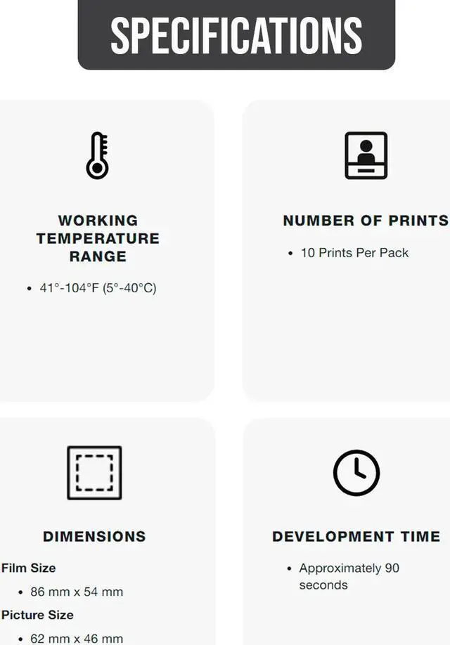 • Compatible Image Sizes: It can be used for a 2-inch by 3-inch size INSTAX MINI photo