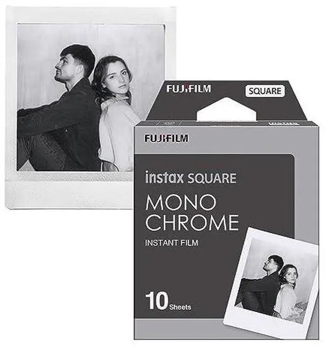 This single pack of FUJIFILM INSTAX Square Monochrome Instant Film contains 10 sheets of instant black & white film that is compatible for use with the FUJIFILM INSTAX Square series of cameras or INSTAX Square printers. This film features neutral gray tonality and normal contrast with natural shadow and highlight response when used under daylight or electronic flash lighting conditions. A refined grain structure provides high image sharpness and clarity as well as a versatile ISO 800 film speed for use with a wide variety of subjects. Each sheet of film produces a glossy image that is surrounded by a simple white border.