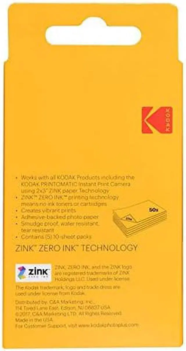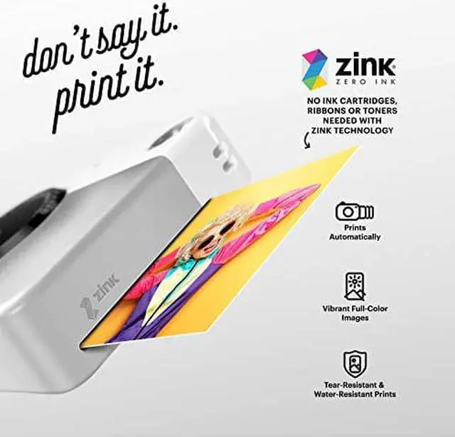 Zink Zero Ink photo paper is the exciting new way to print vibrantly colorful photos instantly, without the need for ink or toners. Easy to load, with no cleanup needed, sticky-back ZINK photo prints are water-resistant, tear-resistant, smudge-proof, and dry to the touch.
