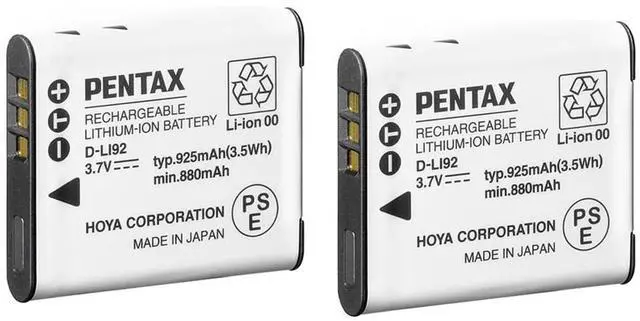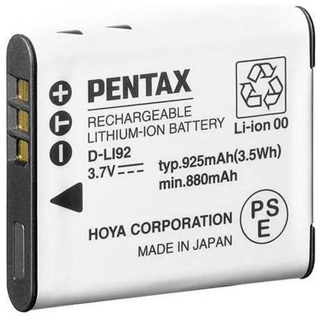 A high-capacity power solution for your photography needs, the D-LI92 3.7V 925mAh Rechargeable Lithium-Ion Battery is a robust and reliable choice for both professional and amateur photographers. Specifically designed for compatibility with select Pentax cameras, this battery ensures optimal performance and longevity, making it an essential accessory for your camera gear. Engineered with a high-quality lithium-ion composition, the D-LI92 battery offers a substantial capacity of 925mAh, providing extended usage time between charges. This makes it an ideal choice for those long photography sessions or travel adventures where power sources may be scarce.