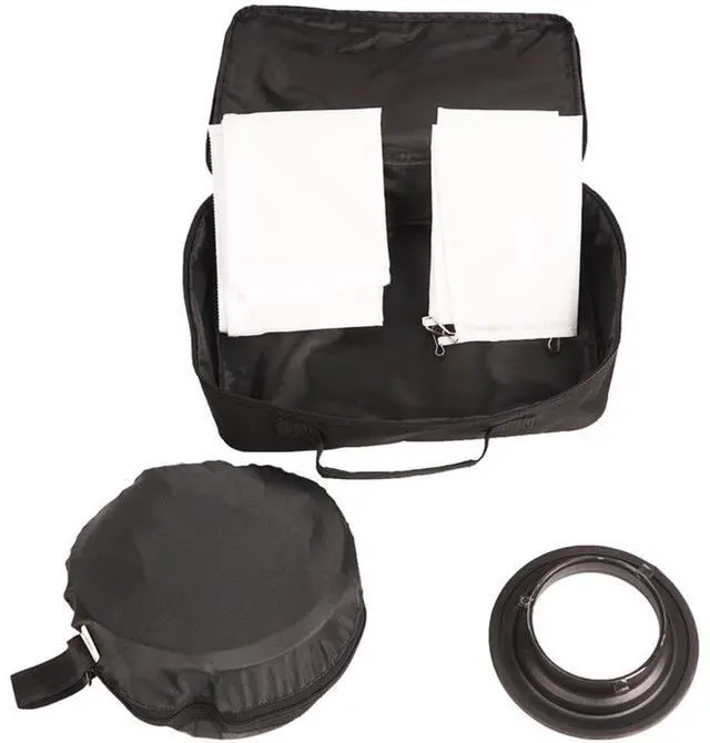 Transportation and storage are made effortless with the included zippered pouch for the foldable softbox and a zippered outer soft case designed to hold the speed ring, diffusion filters, and the softbox itself. This comprehensive package ensures that your lighting equipment remains organized, protected, and ready for action whenever inspiration strikes.