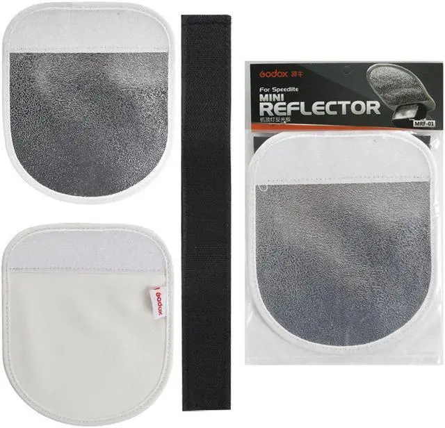 With the soft indirect flash, use the pure white color.. For longer ranges and spectral enhancements, use the silver size.. Reduces background shadows and eliminates the red-eye effect.. Note: this product is a two-sided reflector (white / silver), not two reflectors.. Mini reflector, double-sided double-sided effect, white surface that offers a better soft light effect, silver reflective surface.