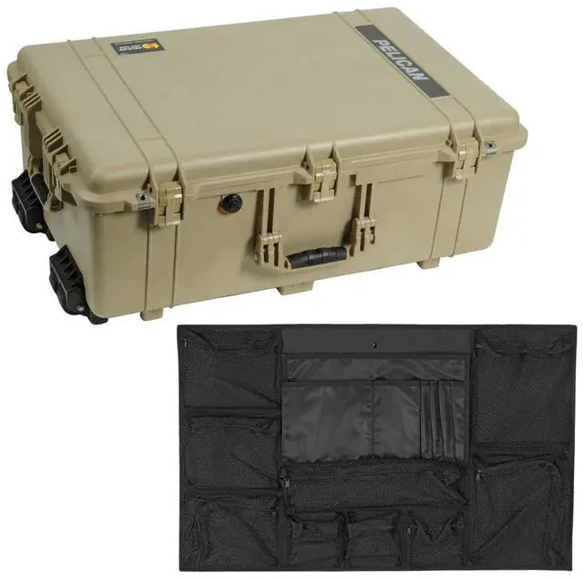 Pelican 1650 Watertight Wheeled Hard Case, Desert Tan, Bundle with 1659 Lid Organizer