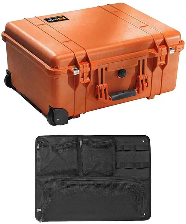 Pelican 1560 Watertight Hard Case with Cubed Foam Interior & Wheels - Orange with pelican 1569 lid organizer f/1560