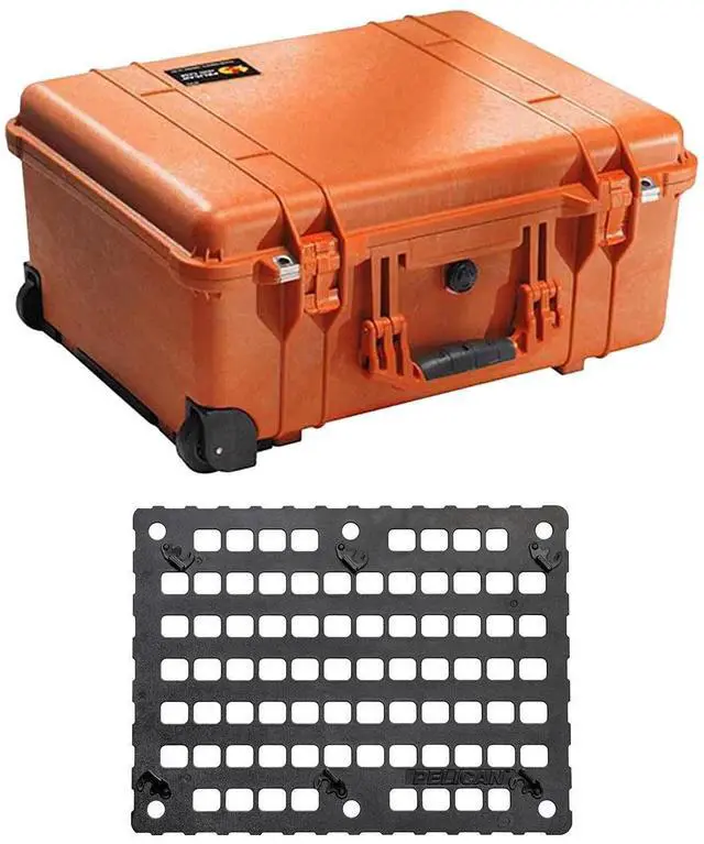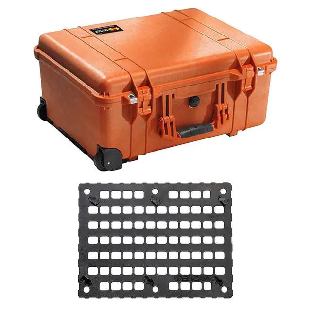 Pelican 1560 Watertight Hard Case with Cubed Foam Interior & Wheels - Orange with Pelican 1560mp Molle panel case lid org