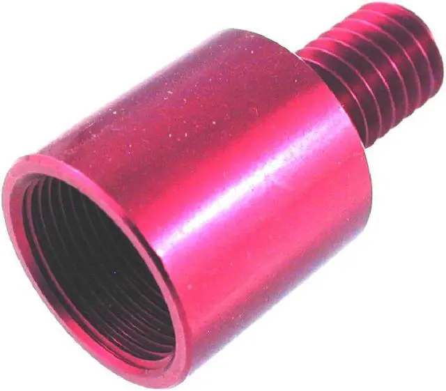 This thread adapter is for connecting 5/8" -27 (female) to 3/8" -16 (male) . Protective and easy to find anodized red finish. Overall length 1"