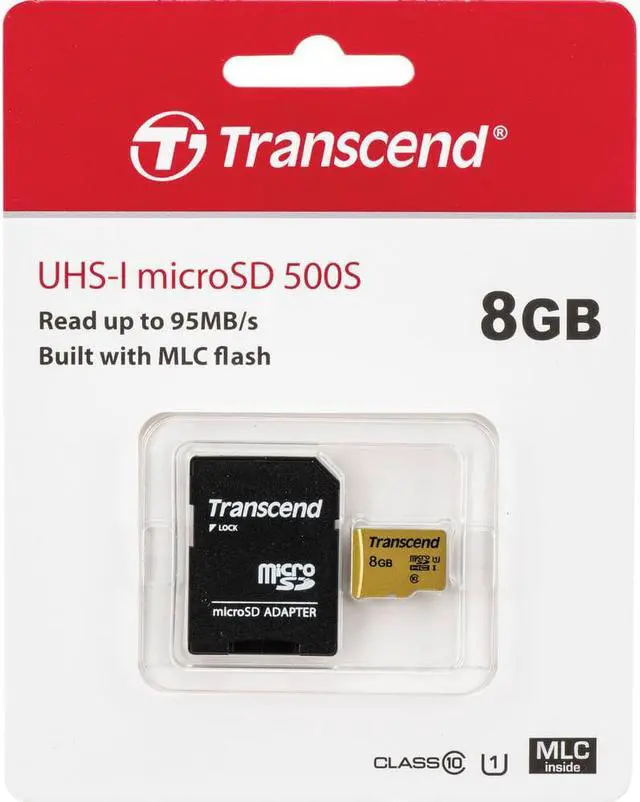 2 Transcend 8GB UHS-1 Class 10 micro SD 500S Read up to 95MB/s Built with MLC Flash Memory Card + SD Adapter