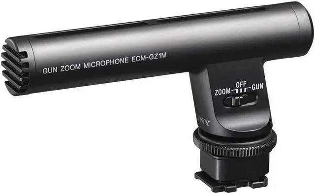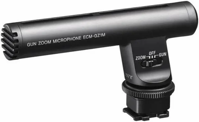 Record faraway conversations, stage performances, and more with the versatile Sony zoom microphone. Its "zoom" mode lets you zero in on distant sounds, while the "gun" mode picks up sudden, sharp noises coming from whatever you're filming.