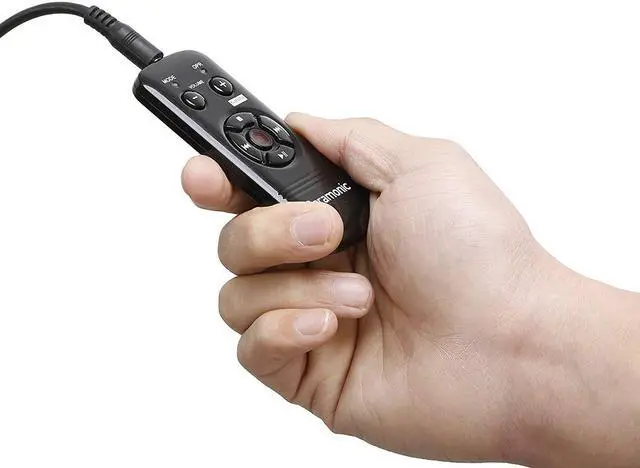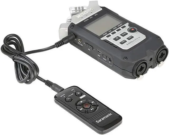 The Saramonic RC-X is a wired remote controller made specifically for the Zoom H6, H5, H4n Pro, H2n, & Sony M10, D50, D100 Portable Digital Recorders. The RC-X prevents handling noise while recording by adding remote capability to Record, Play, Pause, Stop, Fast-forward, Rewind, & to Add Markers from up to 40" (101cm) away. The remote also allows you to create and scan through markers, with built-in recording and clip indicators to provide you with visual feedback.