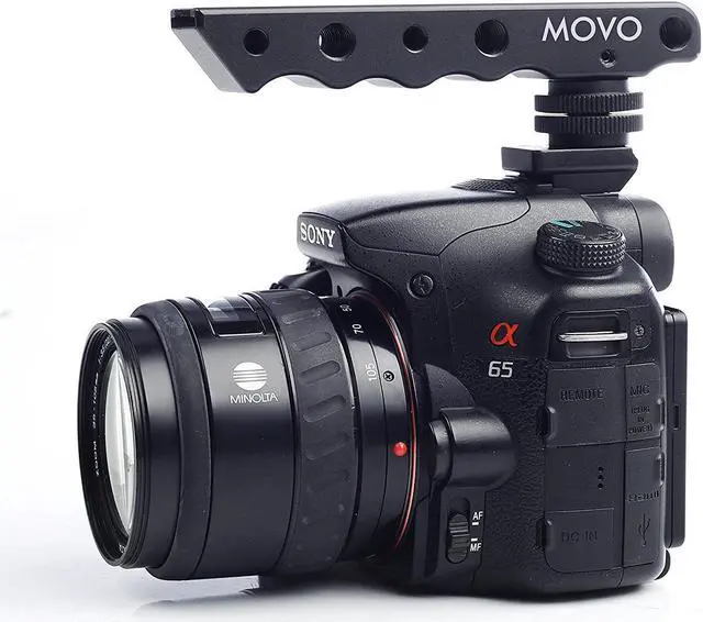 The Movo Photo SVH6-SY Cold Shoe Video Stabilizing Top Handle and Cold Shoe Extender is the perfect tool to stabilize your video shoots with your Sony Alpha DSLR with included shoe adapter. The SVH6-SY features a built-in spirit level, cold shoe and multiple 1/4" and 3/8" threads. Measures 6" x 1.5" x 1.1" (15.2 x 3.8 x 2.8cm); Weighs 5.8oz (164g).