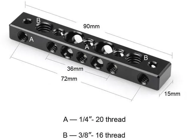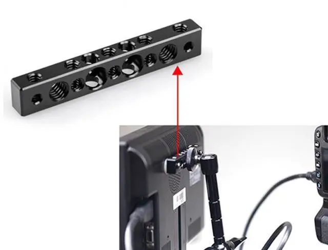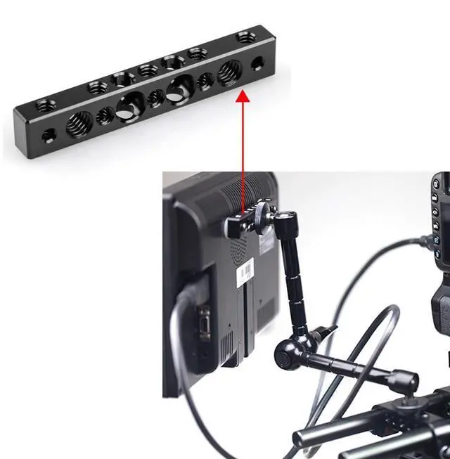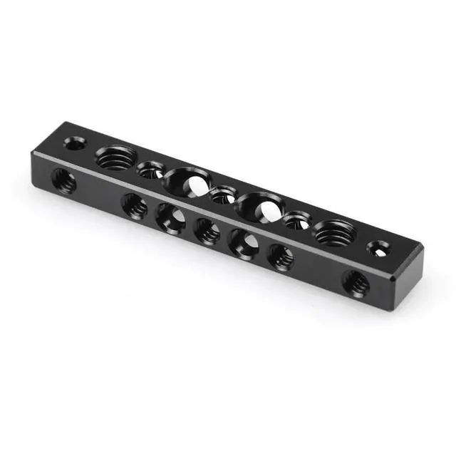 Bring your photography and videography to the next level with the SmallRig Cheese Bar, a durable and reliable mounting solution designed with 1/4" and 3/8" screw holes. This robust accessory, crafted from high-quality black anodized aluminum, features industry-standard 1/4"-20 and 3/8"-16 threaded holes, ensuring compatibility with a wide array of camera accessories. Whether you're using a Red camera, Red Rig, or other equipment, this versatile cheese bar seamlessly integrates into your setup thanks to its RED screw spacing. It's designed to fit a variety of monitors, including the 619AH, 819AH, FA1011, and FA1013, further enhancing its adaptability.