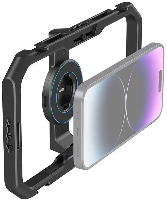 Note: Compatible with Small Rig's latest quick release handles (Coming Soon) and other brands' handles featuring 1/4"-20 thread (s) Magnetically Attach Instantly ShootSupports Apple MagSafe in static shootingNote: Android phones need to use with the phone clampOne-click Locking ensuring steady controlThe locking quick-release mechanism guarantees a stable, secure hold on the phone during dynamic action sequencesNote: Compatible with mobile phones - 62.5 mm to 87mm wideExplore the Latest Upgrades - Awaken Your Creative SpiritThe new design masterfully combines sleek, modern metal finishes with timeless, geometric elegance Every detail is thoughtfully crafted, ensuring you experience the pinnacle of artistic creationWide Adaptation - Effortless ControlThe clamping mechanism enables lateral adjustments to maintain phone centering without obstructing its controls Does not obstruct and maintains full access to your mobile phone's buttons for a hassle-free useCompatible with 95% of the smartphone models available on the market, including HUAWEI Mate 60 series, Xiaomi 13 Ultra series, vivo X 90 series, OPPO Find X6 series, Galaxy S23 series, iPhone 15 Pro series, and moreThink Outside the Cage Unlock PotentialEquip your phone with external microphones, lights, side and top handles, along with other accessories