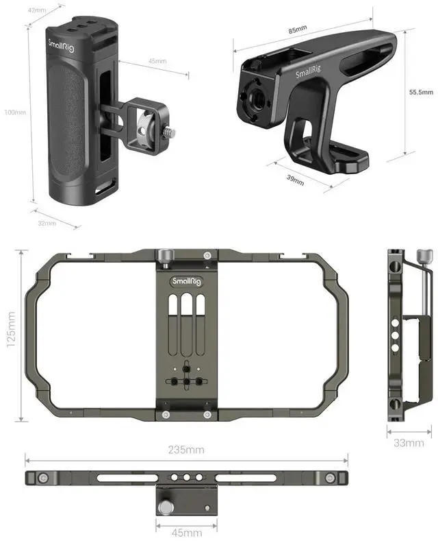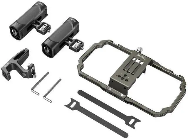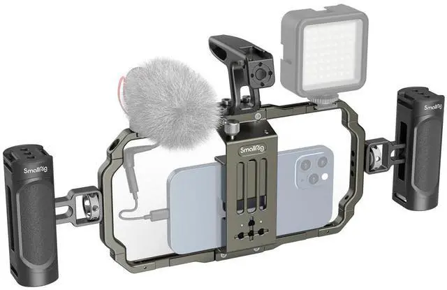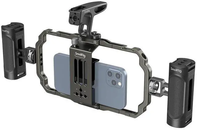 Let the SmallRig Universal Mobile Phone Handheld Video Rig Kit 3155 transform your mobile videography experience. This professional-grade rig kit is designed to enhance your vlogging, mobile filmmaking, and commercial video production endeavors. Its versatile design accommodates mobile phones with a width range of 62mm to 86mm, ensuring compatibility with a wide array of devices, whether encased or not. The kit is equipped with two side handles and a top handle, offering a sturdy and secure grip for handheld phone shooting. This high-quality rig kit is not only durable but also enhances the stability of your shots, reducing shake and ensuring smooth, professional-grade footage.