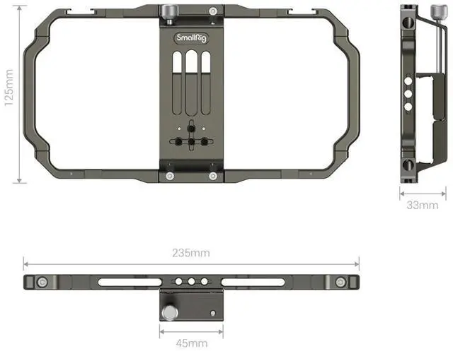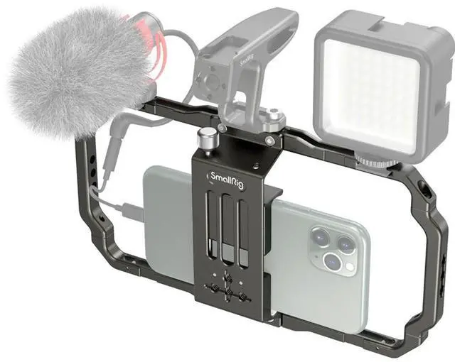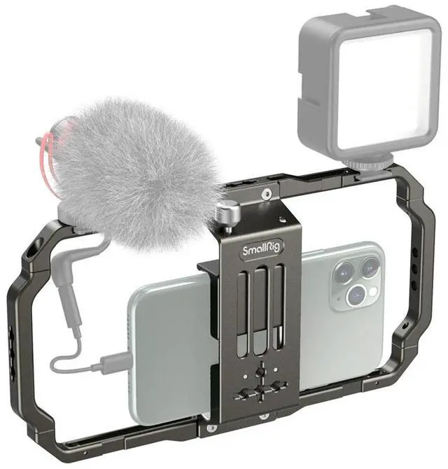 SmallRig Universal Mobile Phone Cage 2791B is a perfect cage for vlogging, live streaming, and mobile filmmaking. It works perfectly with most mobile phone brands in the market and will be compatible with mobile phones with width range from 62mm to 86mm, with or without an outer case. It's a screw tighten instead of the pressure fit, which will provide a more stable clamping effect. It features two cold shoe mounts for a microphone and a LED light. Multiple 1/4 threaded holes can be used to attach a tripod, like SmallRig Aluminum Mini Tripod BUT2429, a top handle like SmallRig Mini Top Handle for Lightweight Cameras (1/4"-20 Screws) 2821, a side handgrip like SmallRig Aluminum Side Handle for Smartphone Cage HSS2424.