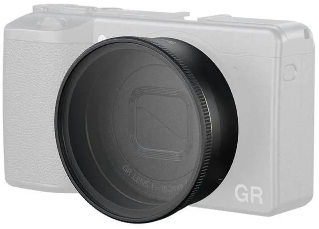 For added protection, a custom silicone protective cap is included to shield both the filter and sun hood during storage. The matte black finish and gold accent ring are meticulously designed to complement the GR IV's aesthetics. This attention to detail ensures the camera retains its sleek profile and style, all while benefiting from uncompromising professional protection.