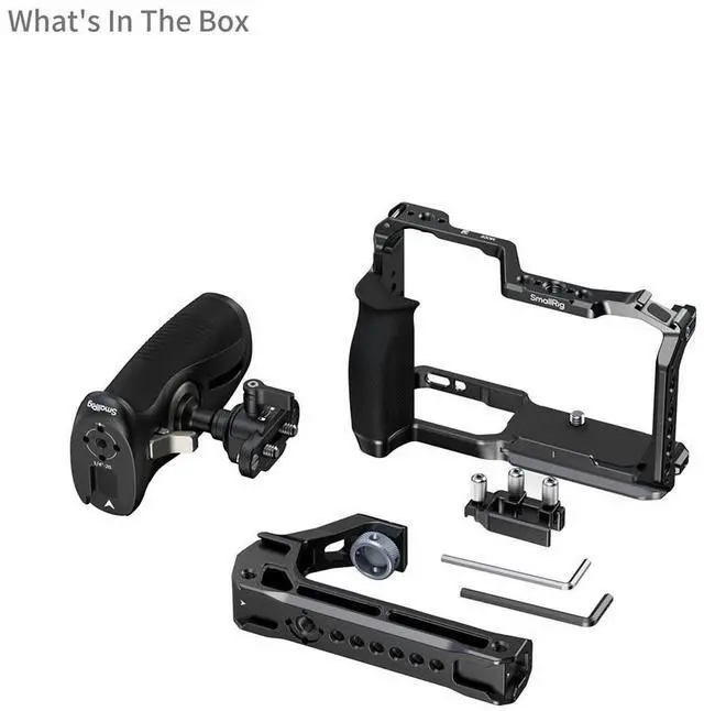 Handle Lightweight Mobility: L-Shaped GripProtective Base to Build OnAll-round protection with integrated silicone padding. Offers Comprehensive mounting ports for attaching handles, mics, monitors, and more QD Socket Arca-Swiss Quick Release Plate 1/4"- 20 - Threaded Hole 3/8"-16 - ARRI Locating Hole 1/4"- 20 Locating Hole Cold Shoe Mount Strap HoleYour Grip, UpgradedErgonomic silicone grip seamlessly blends with the camera body and offers a comfortable holdArca-Swiss Quick Release PlateSeamless mounting to DJI RS series stabilizersSecure Three-Point LockingEnsures a rock-solid mountingPort Protection and Stable Data TransferDedicated HDMI & USB-C cable clampMobility for Dynamic AnglesLightweight handle ensures a comfortable grip to minimize hand strain