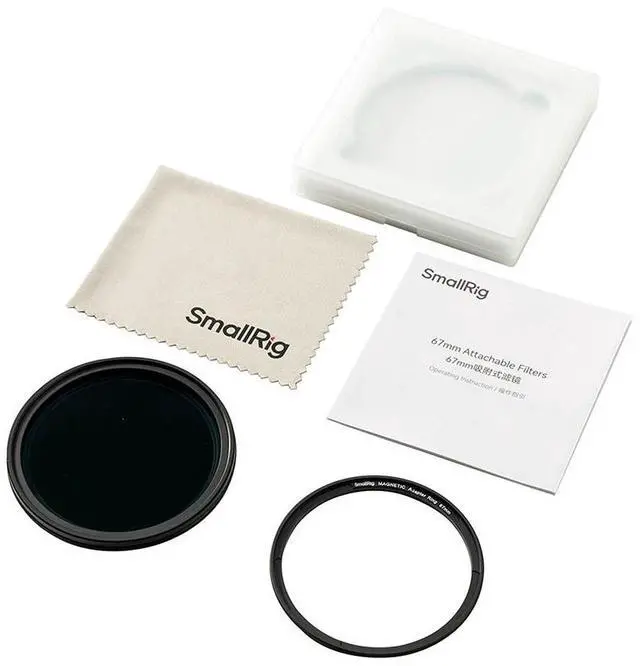 Are you ready to elevate your videography and photography with the SmallRig 67mm Attachable VND Filter ND2-ND32 (1-5 Stop) 4581? This indispensable tool is designed to offer adjustable exposure reduction, allowing you to customize your settings for every unique shooting scenario. Whether you're capturing dynamic video footage or still images, this filter ensures optimal exposure parameters for professional-grade results. Crafted with multi-coated optical glass, the SmallRig VND filter guarantees superior optical quality, ensuring your images remain free from vignetting and preserving the integrity of your shots. The innovative magnetic attachment system is engineered for speed and efficiency, simplifying the installation and replacement of filters.