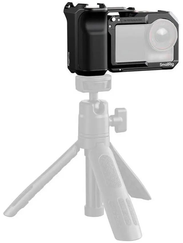 The handle's base is equipped with a 1/4"-20 anti-twist locating hole for quick mounting to tripods and other support systems. For expanded functionality, the top-mounted cold shoe mount accommodates various accessories, including video lights and microphones. Engineered for maximum compatibility, the handle works seamlessly with both SmallRig's cages (ID 4119C, 5135) and DJI's native Osmo Action 5 Pro / 4 / 3 cages. The cage incorporates a magnetic mount that is compatible with both SmallRig's magnetic adapter (ID 3662B) and DJI's original magnetic quick release adapter mount
