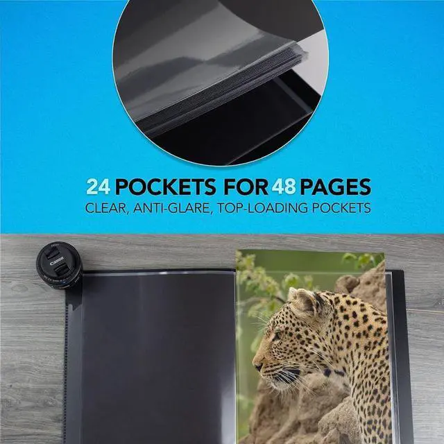 8.5 x 11" Itoya Art Profolio Original Storage/Display Book provides 100% acid-free and archival safe storage. Use the Profolio to store your photographs, film, and artwork while still being able to show off your work. In addition to being acid-free, the clear polypropylene sheets are formulated to repel copier toner, guaranteeing that you're work will be safe for years to come. A versatile item it has an inner cover pocket and the sheet are top-loading.