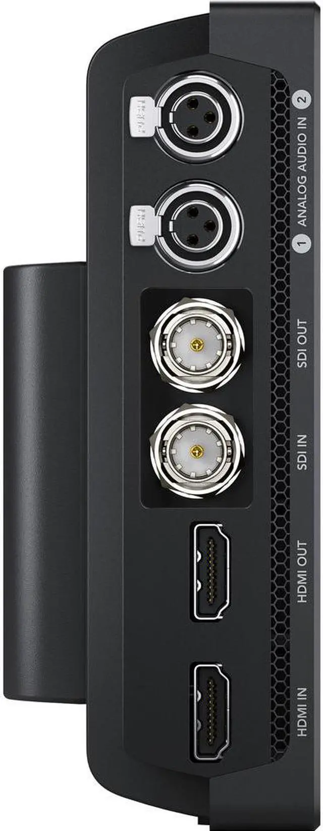 Blackmagic Design. It features a bright 7", 1920 x 1200 display with 2500 cd/m² brightness to help you frame and focus your shots, and provides 12G-SDI and HDMI inputs for recording the video output from professional and consumer cameras. The monitor also features two balanced 3-pin mini-XLR inputs with 48V phantom power support for crisp audio recording. You can monitor and record HDR video up to DCI 4K, UHD 4K, 2K, or HD 10-bit 4:22 and up to 16 channels of embedded 24-bit 48 kHz audio. The Video Assist records using dual high-speed UHS-II SD slots to SDHC/XC memory cards. You can also use the USB 3.1 Gen 1 Type-C port to record to an external drive, as well as use it for configuring and upgrading the monitor. Video is recorded using industry-standard Apple ProRes (HQ, 422, LT, or Proxy) and Avid DNxHD and DNxHR codecs.