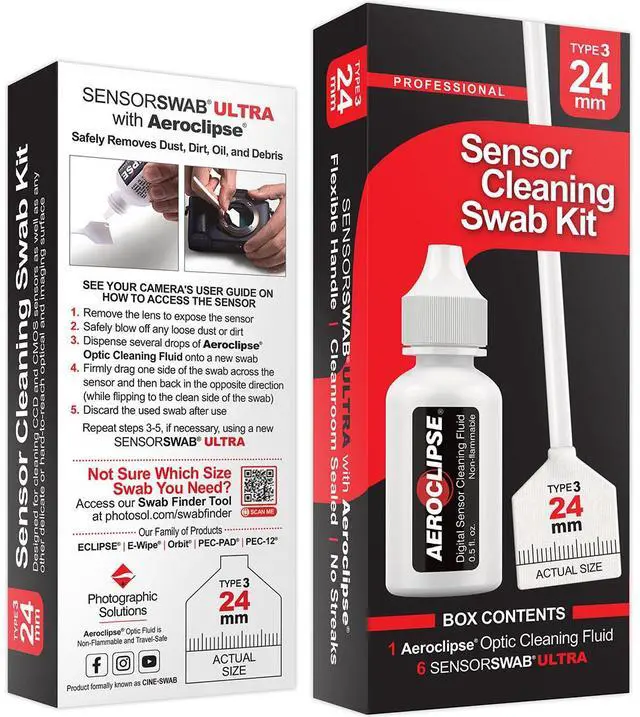 You can achieve professional-grade sensor cleaning with the Photographic Solutions Sensor Cleaning Swab Kit, designed specifically for CCD and CMOS sensors as well as other delicate optical surfaces. This comprehensive kit includes the Sensor Swab ULTRA, Aeroclipse Cleaning Fluid, and Eclipse Optic Cleaning Fluid, each meticulously crafted to ensure the highest standards of purity and effectiveness. The Sensor Swab ULTRA is engineered for precision cleaning, featuring pointed tips that effectively reach between the sensor and baffle to remove accumulated debris without scratching. Manufactured and sealed in a clean room environment, these swabs are the epitome of purity, ensuring no fibers are left behind.