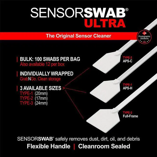 The easy-to-use design makes the cleaning process straightforward, even for those new to camera maintenance. Choosing the Swab ULTRA Cleaning Tool (Type 2) by Photographic Solutions means investing in a product from a reputable brand known for its commitment to excellence in photographic care. The generous quantity of 100 swabs per pack not only provides long-lasting value but also positions this product as an affordable solution for both professional photographers and hobbyists alike. Ensure your camera's performance and image quality remain top-notch by incorporating the Swab ULTRA Cleaning Tool (Type 2) into your regular camera care routine.