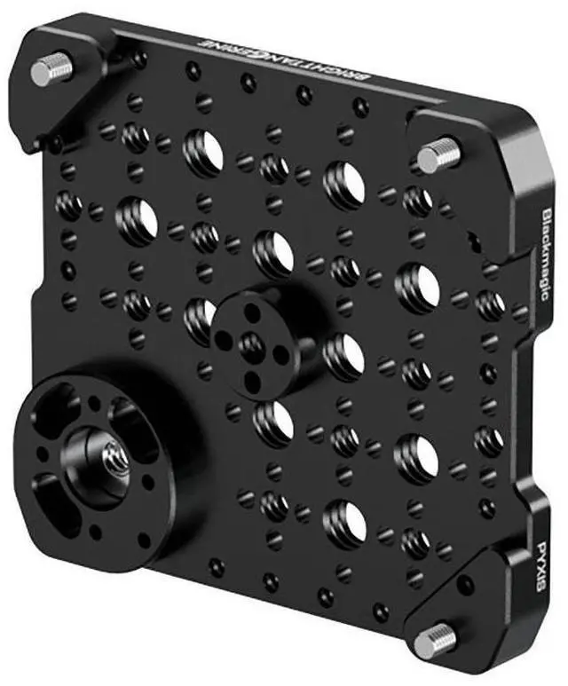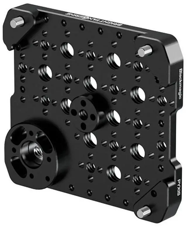 The Blackmagic PYXIS Cheese Plate gives you expanded customization options for your PYXIS. Along with standard-issue 1/4" and 3/8" threads, the Cheese Plate features MAP M4 points and an ARRI rosette for handgrips. The Cheese Plate can also be used to mount the PYXIS vertically for vertical shooting.