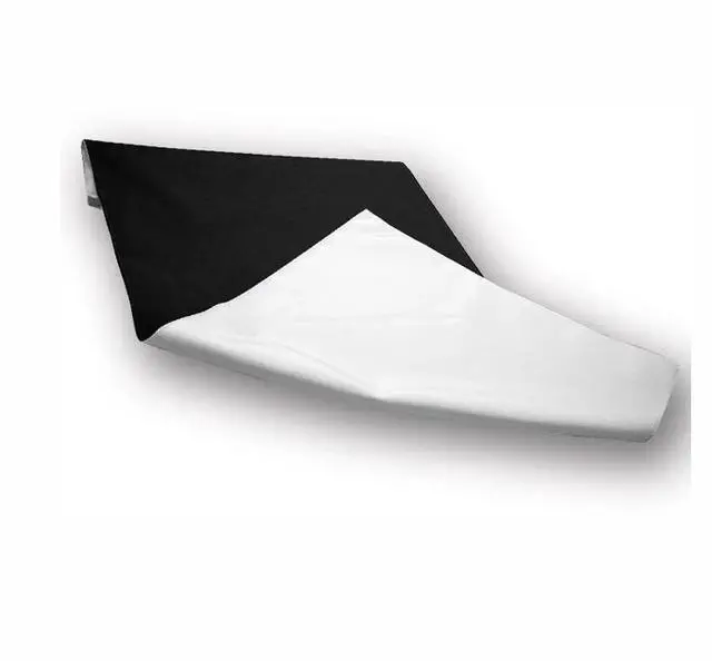 These backgrounds measure 16" x 32" and are made from a washable polyester. Double sided configuration has two colors per side: