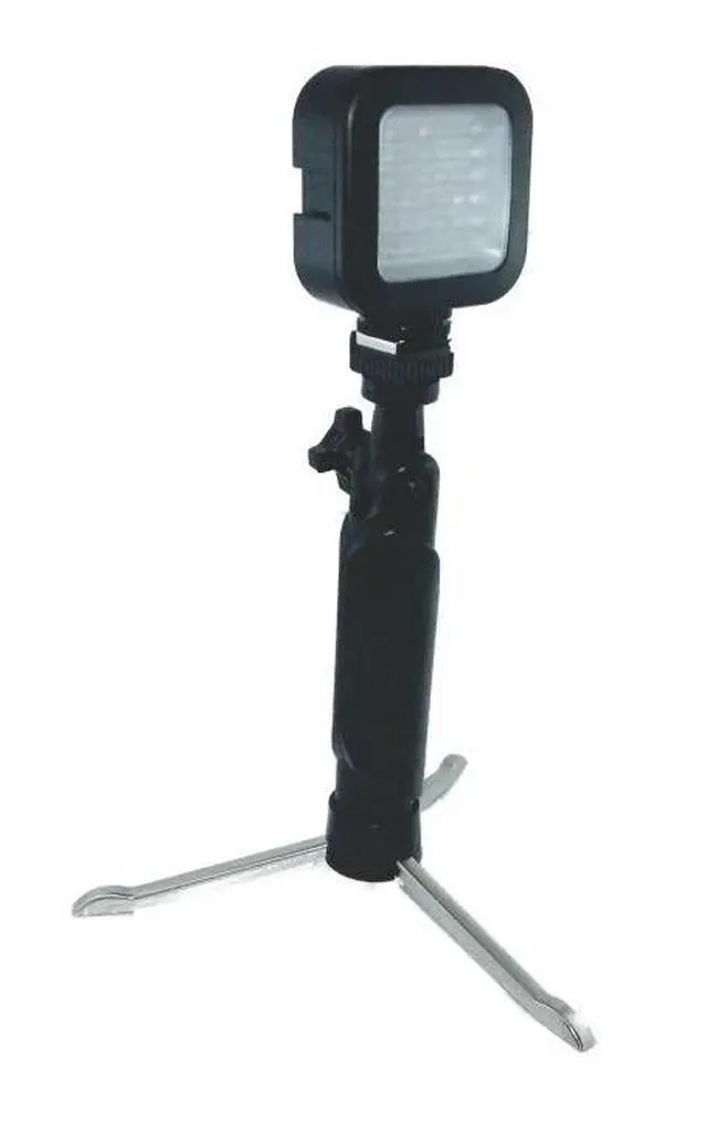 8 inch tall battery powered, table-top lamp fixtures with 36 bright light LEDs for all your photographic requirements or to add extra lighting to your PHOTO STUDIO IN A BOX. The lamp's leg can retract into the shaft for hand-held use.